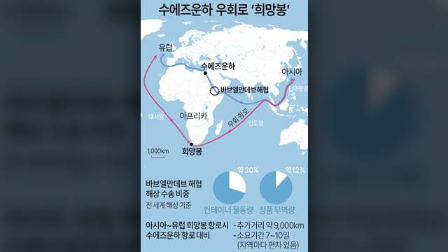 해운사들이 아시아와 유럽을 잇는 최단 항로인 수에즈운하를 포기하고 긴 항로를 선택함에 따라 운임은 인상되고 있습니다.