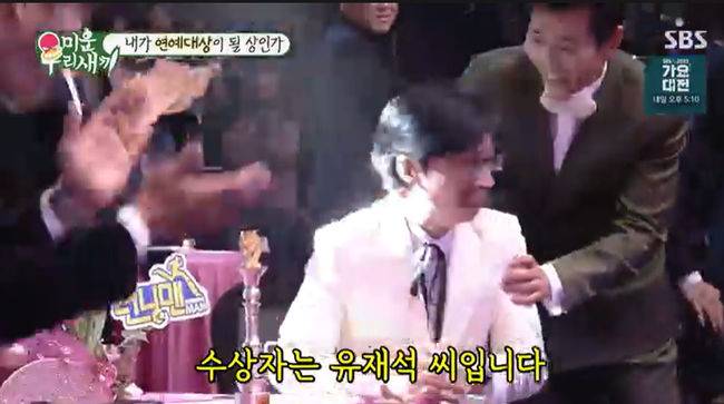 실제 당시 애써 유재석이 대상을 받자, 애써 미소짓는 탁재훈 표정도 포착되기도 했다.