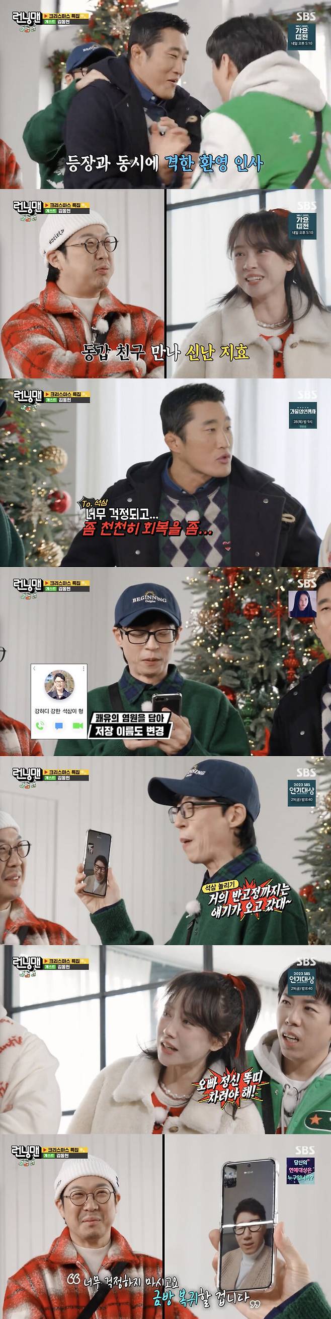 이날 방송에서는 김동현이 지석진의 빈자리를 채웠다. 김동현의 등장에 멤버들은 어느 때보다 반갑게 맞았다.