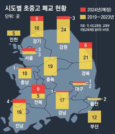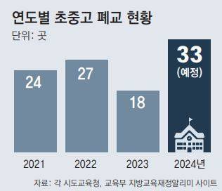 - [단독]전국 초중고 33곳 내년 문닫는다… 올해의 1.8배