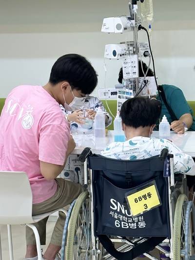 가장 기억에 남는 환아는 항암병동에 2년 넘게 입원해 있던 아이였다. 부모님 모두 직장에 다녀 혼자 있는 시간이 많았던 아이는 퇴원만을 손꼽아 기다렸다고 한다. 그렇게 기다려온 퇴원날을 아이는 화요일에서 목요일로 미뤘단다. 환아가 기다린 사람은 'SCV 형'들이었다.