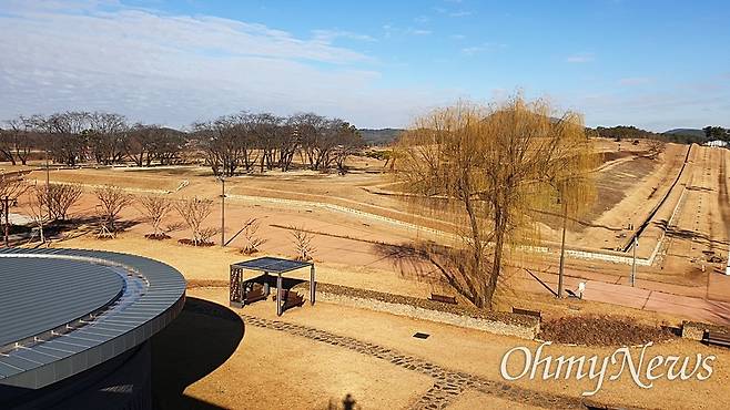 | ▲ 백제왕궁박물관 옥상에서 내려다본 왕궁리 유적지의 겨울 풍경. |