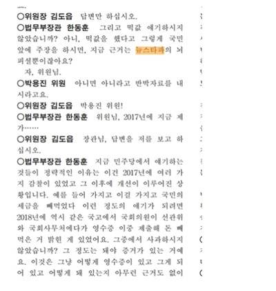 2023년 8월 21일에 있었던 국회 법제사법위원회 회의록을 보자. 박용진 의원이 윤석열 서울중앙지검장 시절 네 차례의 명절을 앞두고 2억 5천여만 원의 검찰 특수활동비가 명절 떡값으로 지급된 정황이 있다는 <뉴스타파> 보도를 언급한 것에 대해, 한동훈 전 장관은 '뉴스타파 뇌피셜'이라고 반발한다.