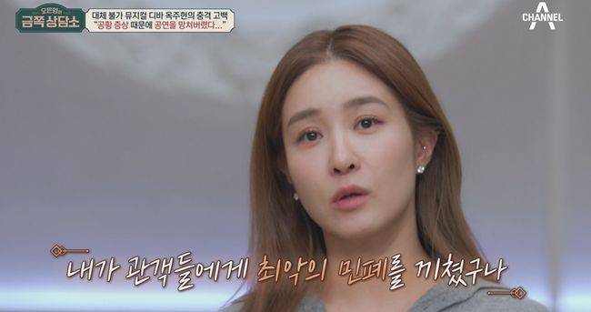 이지혜를 위로하는 오 박사의 말에 옥주현 또한 공황 증상을 겪고 있다고 고백한다. 약의 도움도 받고 있다고. 뮤지컬 ‘위키드’ 공연 당시 공중에 매달려 노래하는 씬 도중 “떨어질 수 있겠다”는 불안감 때문에 위산이 역류하기 시작했고, 그로 인해 노래가 나오지 않아 무대를 망쳐버렸다는 것. 이후 “또 그렇게 되면 어떡하지?” 생각하는 순간, 아무런 소리도 들리지 않고 노래를 못 부를 정도로 숨도 쉴 수 없었다고 털어놓는다.