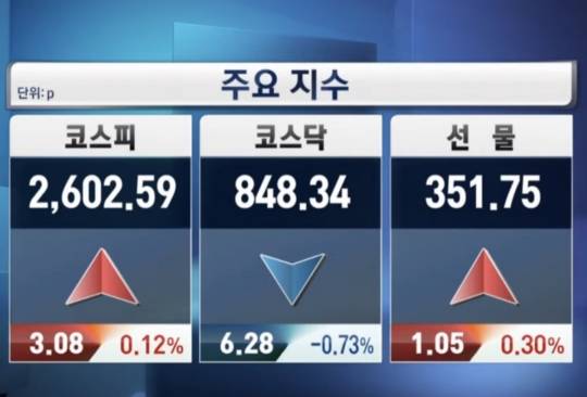 이날 코스피는 전 거래일(22일)보다 3.08포인트(0.12%) 오른 2,602.59에 마감했다.