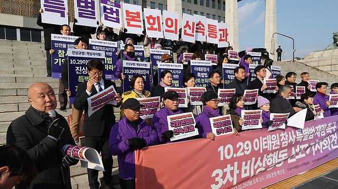 이지연 참여연대 사무처장은 "여야 의지만 있다면 당장 28일 본회의에서 특별법을 제정할 수 있다"라며 "진상 규명의 첫 단추를 끼우지 못한 상황에서 해를 넘길 수는 없다"라고 호소했습니다.