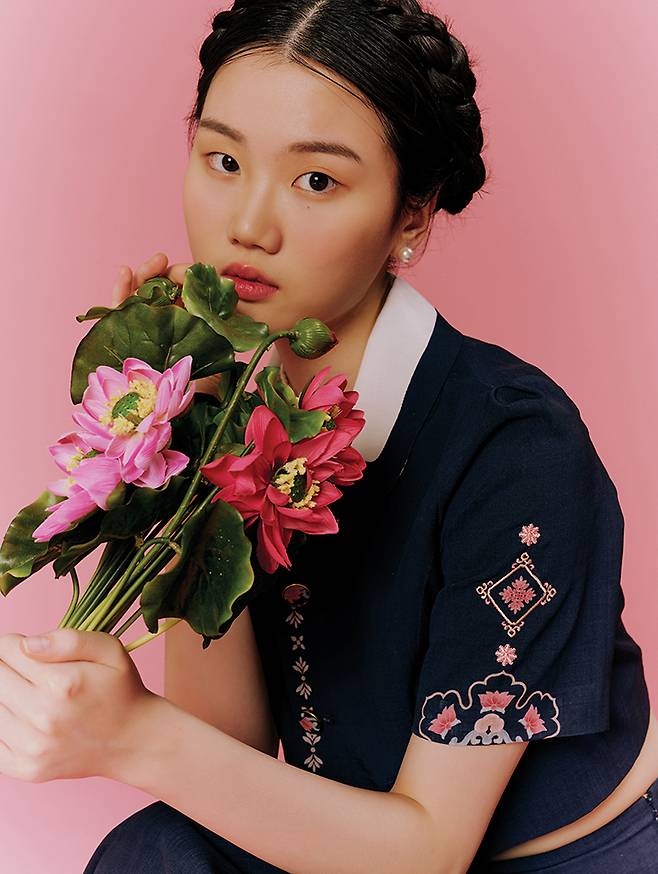 A : 스물세 살, 우연히 본 한복 사진과 사랑에 빠졌다. 광장시장에서 난생처음 한복을 맞췄는데 몸매에 대한 스트레스가 극심했던 당시에 한복 입은 내 모습이 예뻐 보이더라. 저고리가 짧고 타이트하며 치마는 풍성한 상박하후 ‘Y’ 자의 비대칭 형태, 끈으로 묶어 조절하는 ‘여밈’ 등 한복이 가진 가변성과 유연성을 토대로 내가 원하는 느낌을 만들고 싶다. 본질을 잊지 않기 위해 다양한 논문과 복식 자료를 살피며 보이는 그 이상의 이면을 생각한다. 아름다움을 극대화하면서 실용적인 ‘옷으로 기능하는 옷’을 만드는 것도 중요하게 생각하는 부분.