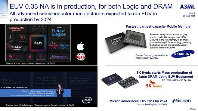 | ▲ ASML이 발표한 EUV사용 고객사들. 삼성전자, SK하이닉스, 인텔, TSMC 등이 보입니다. 하이-NA EUV 사용 고객사에서 빠지면 경쟁에서도 뒤처지게 됩니다. |