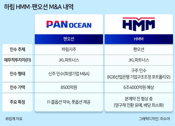 물론 팬오션은 회생절차를 밟던 중 하림 품에 안긴 사례로 HMM과 차이는 뚜렷하다. 두 건 모두 동일한 재무적투자자(FI)를 통해 유동성을 보강한 가운데 FI의 투자금 회수(엑시트) 방식에도 관심이 모아진다.