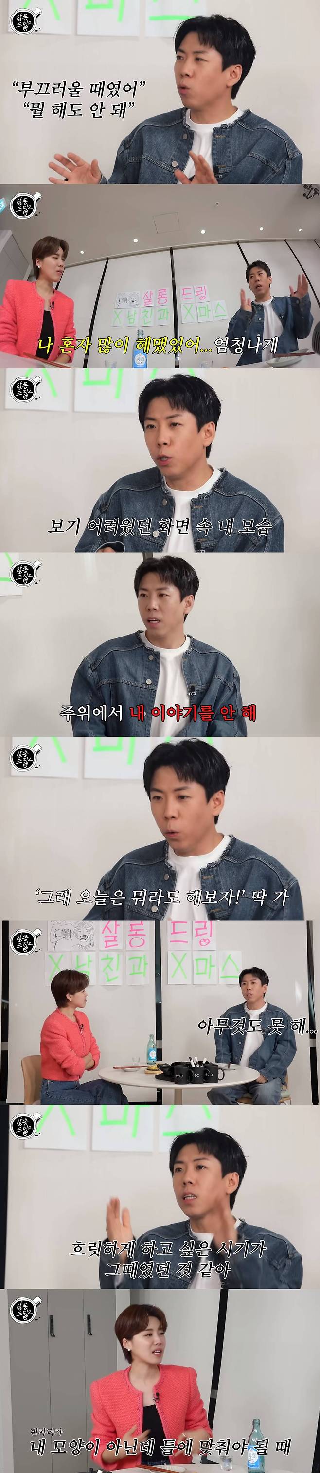 그러면서 "나 혼자 귀신처럼 떠돌아다니는 거다. 갈 때는 '뭐라도 해보자'이라고 가는데 아무것도 못한다. 형들이 도와줘도 안된다. 적응 기간이 좀 길었던 거다. 소민이는 같이 들어간 동기인데 들어가자마자 신인상. 날개 달고 다닐때 나는 그에 비해 그냥"이라며 힘들었던 당시를 떠올렸다.