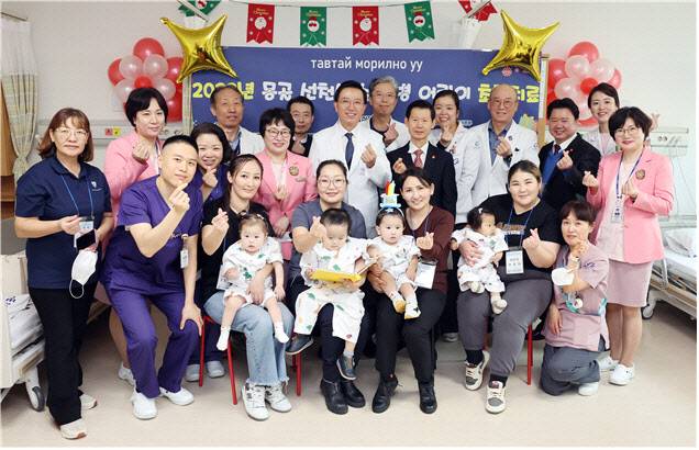 가천대 길병원은 이날 암센터 병동에서 게렐트(1), 세칭빌렉(2), 아크워타(2), 에르덴(10개월) 등 몽골 어린이 4명의 치료를 기념하는 완치축하연을 개최했다. 김우경 가천대 길병원장을 비롯한 병원 주요 보직자들과 아이들을 치료한 소아심장과, 심장혈관흉부외과 의료진 등이 참석했다. 또 이번 초청 치료를 후원한 협력기관인 밀알심장재단 이정재 회장, 새생명찾아주기운동본부 관계자들도 참석했다.