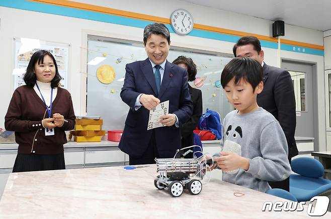 (서울=뉴스1) 민경석 기자 = 이주호 사회부총리가 28일 강원도 춘천시 금병초등학교를 방문해 교육현장을 둘러보고 있다.(교육부 제공) 2023.12.28/뉴스1