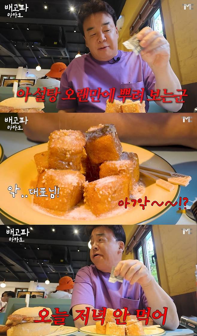 설탕이 올라간 토스트를 맛본 백종원은 만족하는 반응을 보이며 설탕을 더 뿌렸고, 이를 본 제작진은 경악했다.