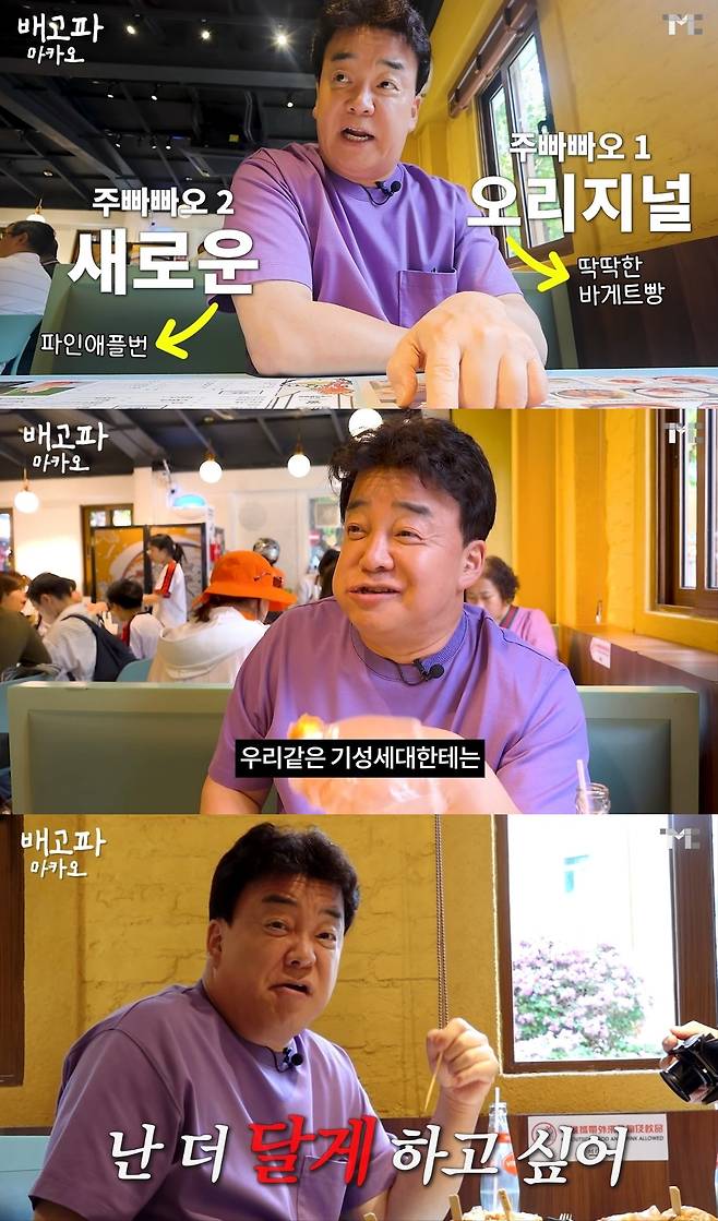 현지 식당에 방문한 백종원은 유창한 중국어 실력을 뽐내며 주문했다. 그는 "마카오에 오면 꼭 먹어야 되는 '주빠빠오'. 빵 사이에 돼지고기를 구워서 넣은 거다"라고 음식을 추천했다. 딱딱한 바게트빵인 오리지널과 파인애플번을 사용한 새로운 주빠빠오를 시킨 백종원은 "단짠단짠"이라고 말하며 기대하는 모습을 보였다.