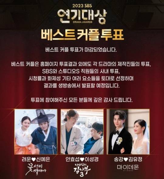 오늘(29일) 진행되는 '2023 SBS 연기대상' 베스트 커플상에 관해 논란이 계속해서 이어지고 있다.