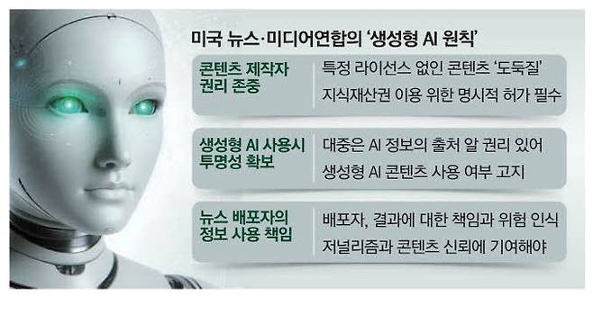 생성형 AI 개발이 빠르게 확산되는 가운데, AI 활용에 따른 '언론 윤리 가이드라인'이 속속 발표됐다. 미국 2200개 언론·출판사가 연합한 미국 뉴스·미디어연합(NMA)이 'AI 원칙'을 공표한 데 이어 최근 한국 인터넷신문윤리위원회가 'AI 활용 언론윤리 가이드라인'을 공개하는 등 잰걸음을 보여서다.