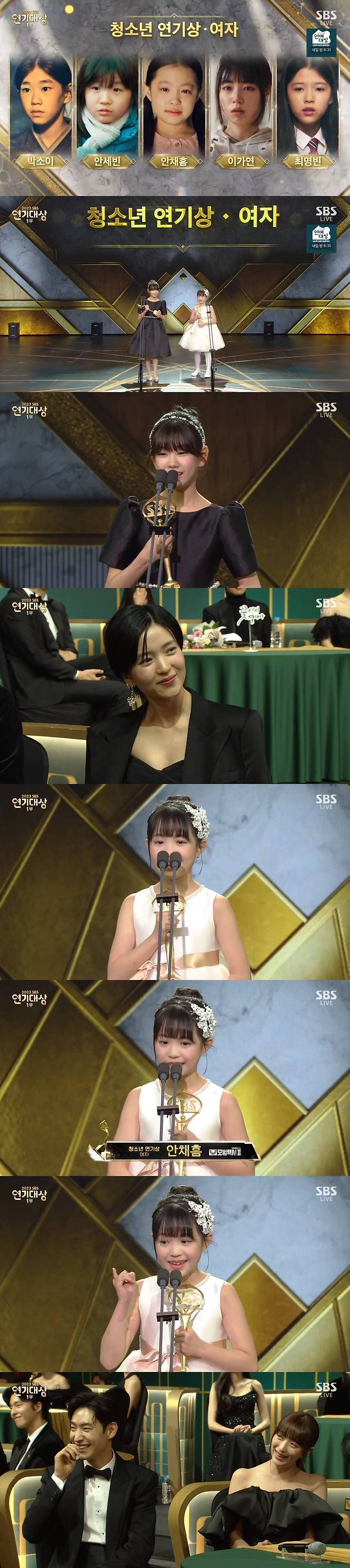 청소년 연기상 여자부문에는 '악귀' 박소이, '소옆경3' 안세빈, '모범택시2' 안채흠. '낭만닥터 김사부3' 이가연, '트롤리' 최명빈이 오른 가운데 박소이, 안재흠이 트로피를 거머쥐었다.