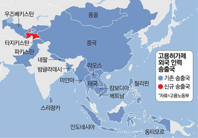 정부는 고용허가제 송출을 희망하는 국가들의 신청을 받아 추가로 송출국을 지정한다는 방침이다. 고용부 관계자는 “신규로 송출국 신청을 한 국가를 대상으로 적합성을 따진 뒤 최종 결정할 것”이라고 설명했다.