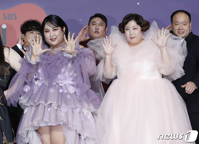 (서울=뉴스1) 권현진 기자 = 방송인 풍자와 신기루가 30일 오후 서울 마포구 상암 SBS 프리즘타워에서 진행된 ‘2023 SBS 연예대상’ 레드카펫 행사에서 포즈를 취하고 있다. 2023.12.30./뉴스1