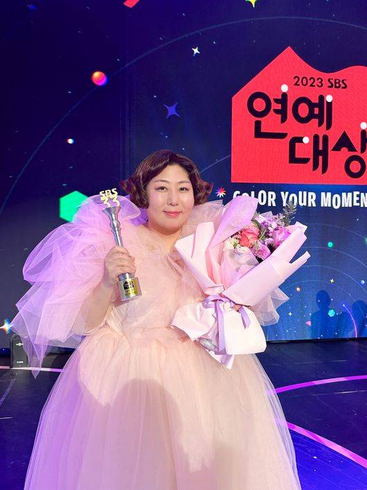 개그우먼 신기루가 '2023 SBS 연예대상'에서 신인상과 베스트 팀워크 상을 수상하며 2023년을 뜻깊은 해로 마무리했다.