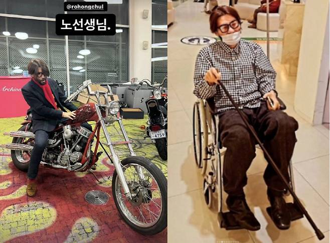 하지만 노홍철은 이번엔 오토바이에 앉아있는 모습을 공개했다. 휠체어에서는 일어났지만 여전히 지팡이를 짚고 다니는 그가 좋아하는 오토바이를 잠시 시승한 것으로 보인다.