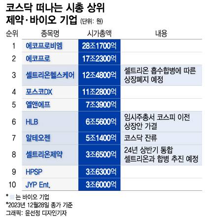 2일 업계에 따르면 셀트리온헬스케어와 HLB, 셀트리온제약 등은 내년부터 코스피로 이전 상장하거나 더이상 코스닥에서 거래되지 않을 전망이다. 해당 기업들은 지난달 28일 종가기준 코스닥 시총 10위 내 위치한 종목들이다.