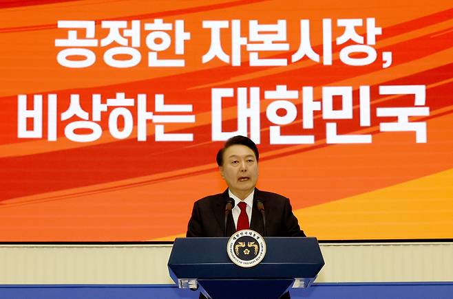 윤 대통령은 이날 한국거래소 서울사옥에서 열린 '2024년도 증권·파생상품시장 개장식'에 참석해 "대한민국에는 글로벌 경쟁력을 갖춘 세계적인 기업이 많지만, 주식시장은 매우 저평가 돼 있다"며 이같이 말했다. 이어 "임기 중 자본시장 규제 혁파를 통해 코리아 디스카운트를 해소할 것"이라고 강조했다.