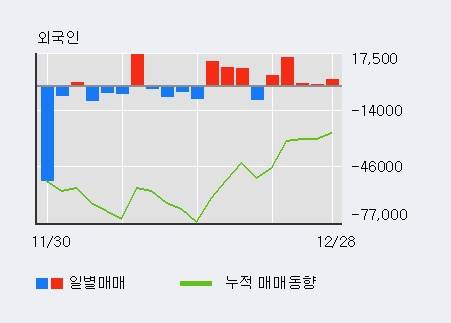 지난 한달을 기준으로 보면 외국인이 3.3만주를 순매수한 반면, 기관은 2,861주를 순매도했고, 개인들도 2.7만주를 순매도한 것으로 집계됐다. 같은 기간 이 종목의 거래비중은 외국인과 개인이 각각 17.6%, 81.4%로 비중이 높다.