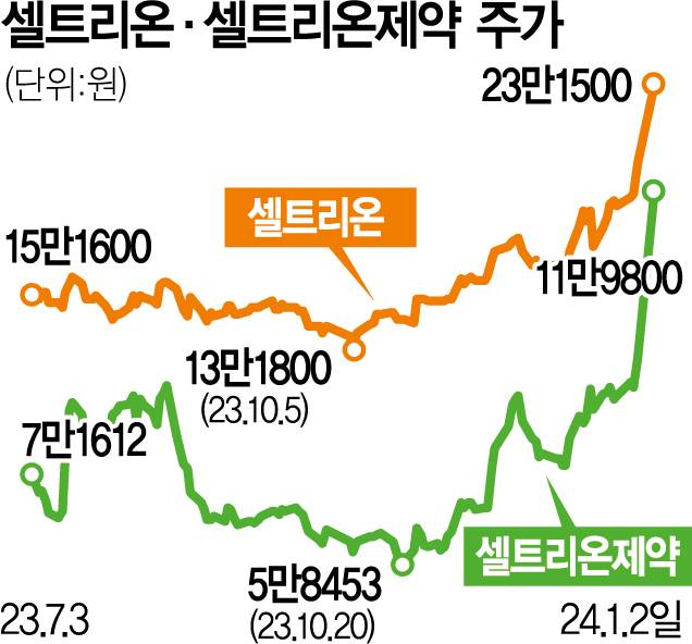 합병 기대감에 셀트리온제약도 상한가