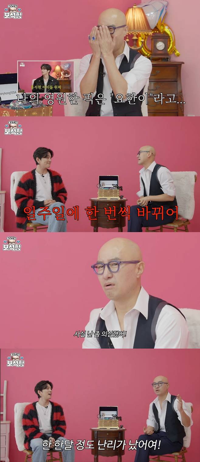 홍석천은 "질투났냐"고 묻더니 "영원한 원픽이 일주일마다 바뀌어. 너도 딱 이번주까지야"라고 말을 이어 웃음을 자아냈다.