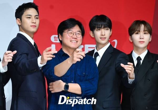 이날 세븐틴은 블랙 수트로 멋을 냈다. 반면 나영석 PD는 블루 셔츠와 데님 팬츠를 착용했다.
