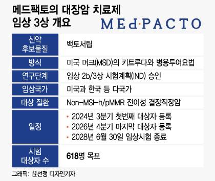 메드팩토는 앞서 백토서팁과 키트루다의 대장암 병용 임상시험에서 안전성을 입증한 데다 기존 치료법보다 뛰어난 효능을 확인한 만큼 임상 3상에서도 긍정적 데이터를 확보할 것으로 기대하고 있다.