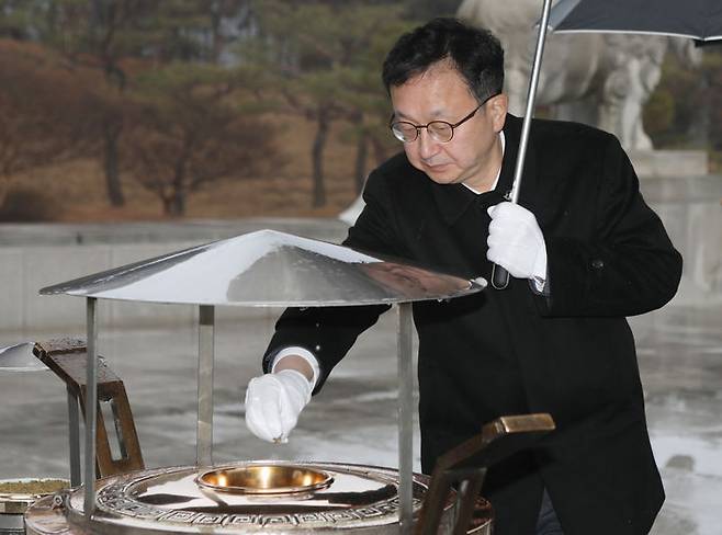 [서울=뉴시스] 최동준 기자 = 정승윤 국민권익위원회 위원장 직무대리가 3일 대전 유성구 국립대전현충원을 찾아 참배하고 있다. (사진=병무청 제공) 2024.01.03. photo@newsis.com *재판매 및 DB 금지