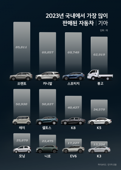 지난해 기아 국내 베스트셀링 모델 쏘렌토
