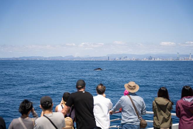 씨월드 경험의 하이라이트는 '웨일 워칭 투어'다. 약 4만 마리의 고래들이 매년 남극 대륙에서 그레이트 베리어 리프(Great Barrier Reef)로 이동하기 위해 골드코스트 해안을 지나가는데, 이를 관찰할 수 있는 투어다. 배를 타고 수평선을 바라보며 바다로 나아가면서 전문가의 친절하고 위트 있는 설명을 듣고, 고래를 발견할 수 있는 지점에 다다르면 잠시 배를 세운 채 고래와의 만남을 기다린다. 이렇게 바다 한가운데 머물 때는 아무리 잔잔한 파도라 하더라도 배가 파도의 일렁임을 그대로 받아 낼 수밖에 없기에 울렁거림이 좀 있다. 평온히 고래를 바라보고 싶다면 미리 멀미약을 먹어 두길 권한다. 수면 위로 떠오르는 고래를 만날 수 있을까 하는 설렘과 걱정, 긴장은 이내 감탄과 환희로 바뀐다. 바다의 표면이 아쿠아 마린 빛깔로 반짝이더니 이내 헤엄치는 모습을 드러내는 엄마 고래. 그리고 그런 엄마의 움직임을 배워 보려는 듯 아기 고래도 서투른 헤엄으로 뒤따른다. 아무리 감정이 메말랐다 해도 이런 장면을 보면 마음이 동요할 수밖에 없다. 보고 또 봐도 지루하지가 않다.