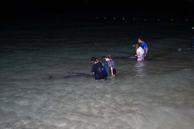 누가 일부러 그려낸 것처럼 아름다운 노을이 저물 무렵엔 야생 돌고래 먹이 주기 체험을 했다. 이날 일정의 마무리로 이것보다 적절한 것은 없었을 것이다. 이곳 해변을 찾아오는 야생 돌고래와의 인연에 얽힌 스토리도 들었다. 어느 날 우연히 뱃속에 아이가 있었던 돌고래가 이곳 근처로 와 먹이를 얻어먹었던 날을 시작으로 4대째 그 돌고래 가족들의 방문이 이어지고 있다고. 이건 뭐 동화 속 이야기라고 해도 어색하지 않다. 외부 바이러스가 자연의 돌고래에게 어떤 해를 미칠지 모르니 먹이를 주기 전 손을 미리 청결히 하는 과정을 거친다. 그리고 작은 물고기를 한 손에 들고 인솔자와 함께 바다로 한 걸음씩 걸어 나간다. 돌고래가 가까이 다가오는 장면이 보인다. 심장의 박동도 함께 올라간다. 하나, 둘, 셋 구호에 맞춰 물고기를 쥔 손을 바닷속으로 집어넣으면 돌고래가 먹이를 물고 간다. 돌고래를 직접 손으로 만지는 건 금기시되는 행동이기에 오로지 선택받은 자만이 돌고래의 살결을 찰나로 경험할 수 있다.