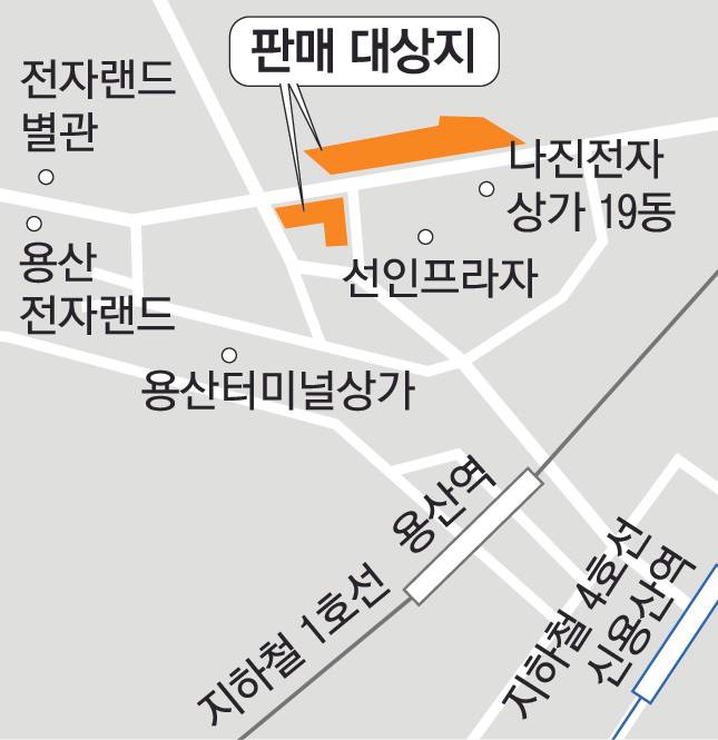 서울 용산 전자상가 일대가 국제업무지구와 연계한 신사업 거점으로 떠오르는 가운데 새 주인을 찾지 못한 나진상가 건물 3개 동이 재매각을 추진한다.