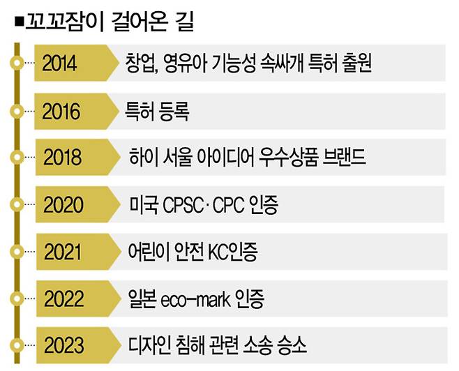 "저희는 두가지의 '영유아 기능성 속싸개 특허'를 갖고 있어요. 창업한 해인 2014년에 출원해서 2년 후 받았죠."