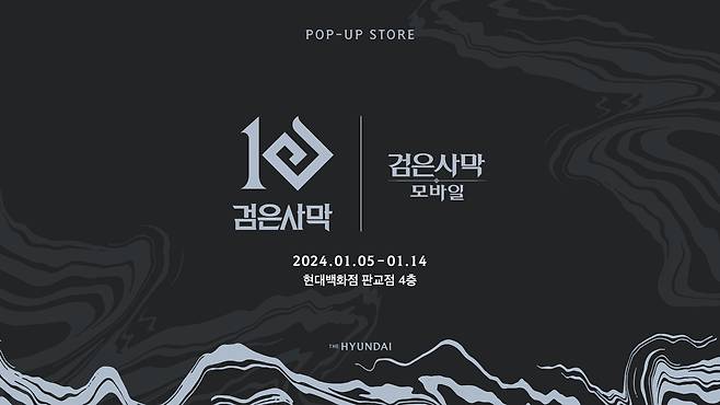 '검은사막' 팝업스토어는 올해 12월17일 '검은사막' 서비스 10주년을 기념하고, '검은사막' 이용자들에게 한해 무탈함과 행운을 기원하는 공간으로 기획됐다. 5일부터 14일까지 10일간 운영되며, 10주년 기념 신규 굿즈가 최초 공개된다.