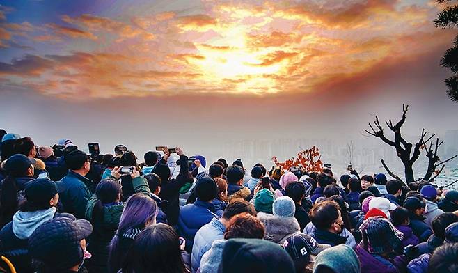지난 1일 동대문구 배봉산에는 새해 첫 해돋이를 보기 위해 모인 사람들로 북적였다.