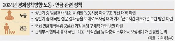 정부가 4일 발표한 '2024년 경제정책방향'에도 노동·교육·연금 '3대 개혁'이 언급됐다.