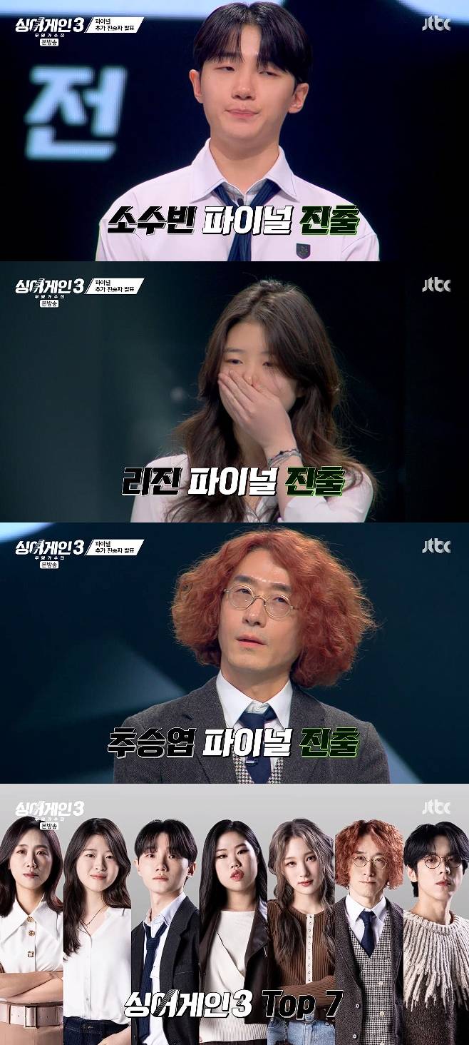 심사위원들의 평가에 결과를 발표하기에 앞서 임재범은 "제작진들에게 따져보겠다"라며 더 많은 추가 합격자를 요청했고, 결국 파이널 무대에서 탑 7의 무대를 지켜보게 됐다. 이에 파이널로 향한 후보자 3명은 소수빈, 리진, 추승엽으로 결정됐다.