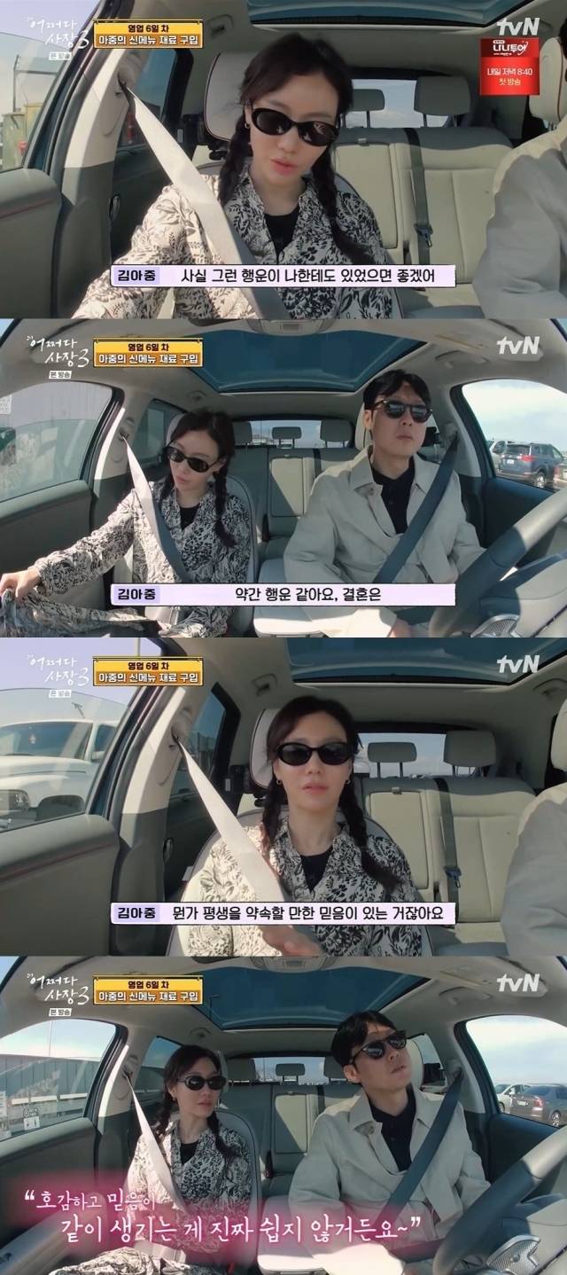 4일 방송된 tvN '어쩌다 사장3'에서는 김아중과 박병은이 함께 장 보러 간 후기를 전하는 모습이 공개됐다.