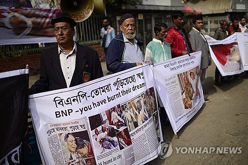People join a rally by victims who said they suffered burn injuries during protests by the main opposition Bangladesh Nationalist Party in October, in Dhaka, Bangladesh, Wednesday, Jan. 3, 2024. Authorities at the time said they arrested scores of BNP members for stoking violence and burning vehicles. They have since blamed numerous arson attacks on the opposition, which BNP has denied, saying the accusations were politically motivated and aimed at quashing their supporters as the election approaches. (AP photo/Mahmud Hossain Opu)