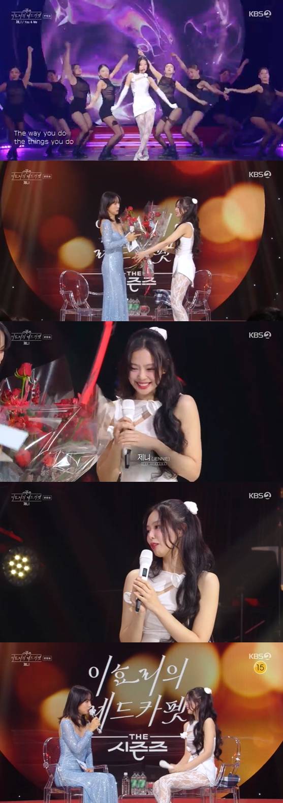 이날 제니는 'You & Me' 무대를 마친 뒤 이효리에게 꽃다발과 손편지를 전달했다.