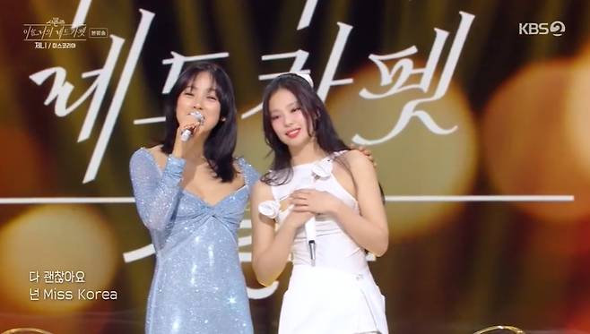 이후 제니는 우상 이효리의 앞에서 '미스코리아' 무대를 선보였다. 이효리는 제니와 함께 즉석에서 합을 맞추며 레전드 디바 간의 좋은 케미를 보여 관객들의 감탄을 이끌었다.