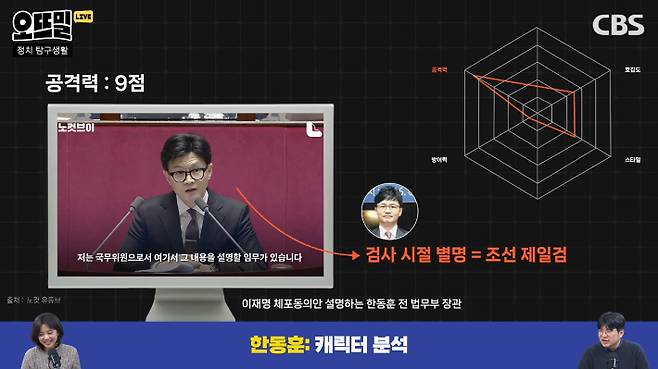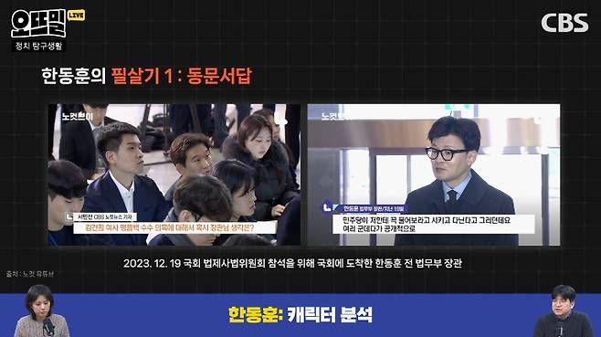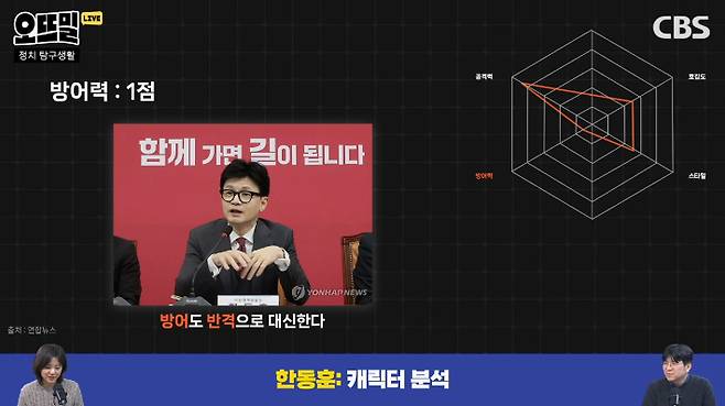 ◇ 채선아> 여기까지 한동훈 위원장의 능력치를 좀 분석해 봤는데, 여기에 더해서 한동훈 위원장이라는 캐릭터가 가지고 있는 특별한 기술, 일명 '필살기'가 있다면 무엇일까요?