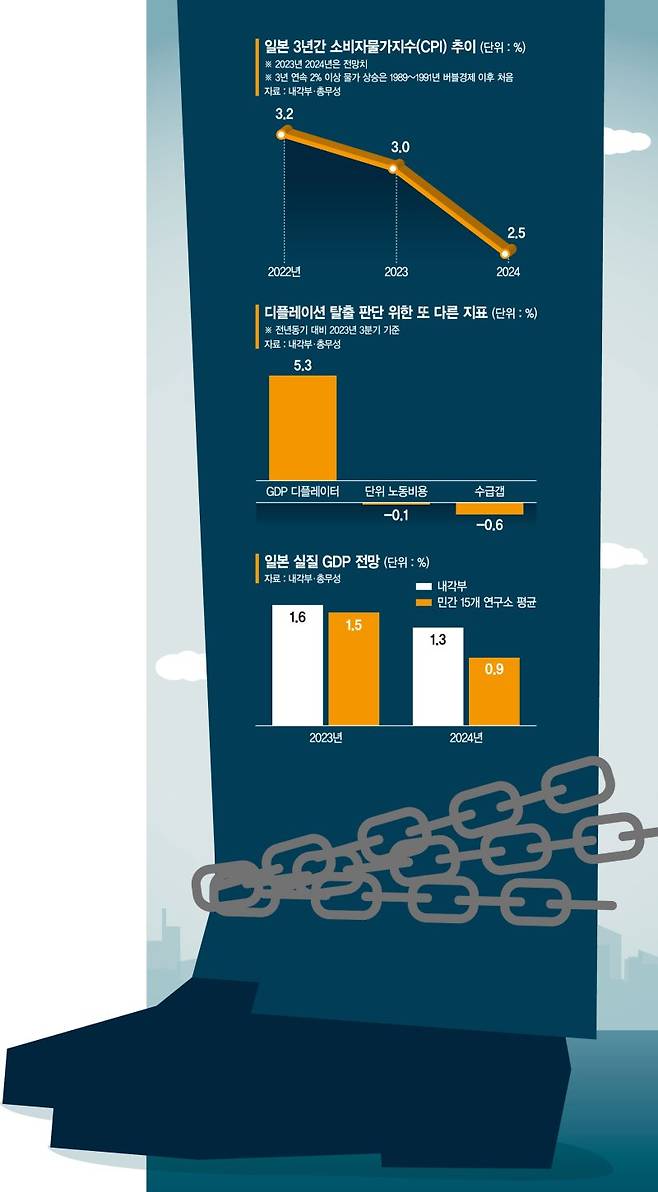 또 시라이 교수는 "지난해 봄 임금협상에서 임금은 3.6%로 최고치를 기록했지만, 4월 이후 인상률은 1.4%로 전년보다 더 나빠졌다"며 "노동시장의 실태는 파악하기 어려워지고, 여전히 수요 확대는 수반되지 않았다. 디플레이션 종식 선언은 적어도 올해 후반까지는 지켜봐야 할 것"이라고 내다봤다.