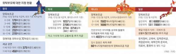 [단독] 美·英·캐나다 양육보조금 한국의 4~5배… 유럽은 휴가비, 日은 생활비 추가 지원[잠시만 부모가 되어주세요]