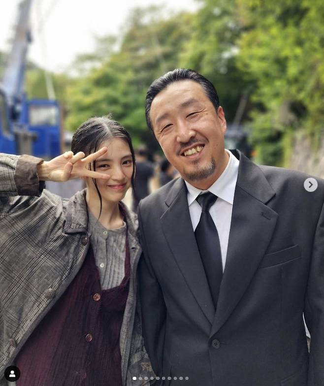 사진 속에는 넷플릭스 '경성 크리처' 배우들과 함께 현장에서 찍은 비하인드 사진이 게재되어 있다.